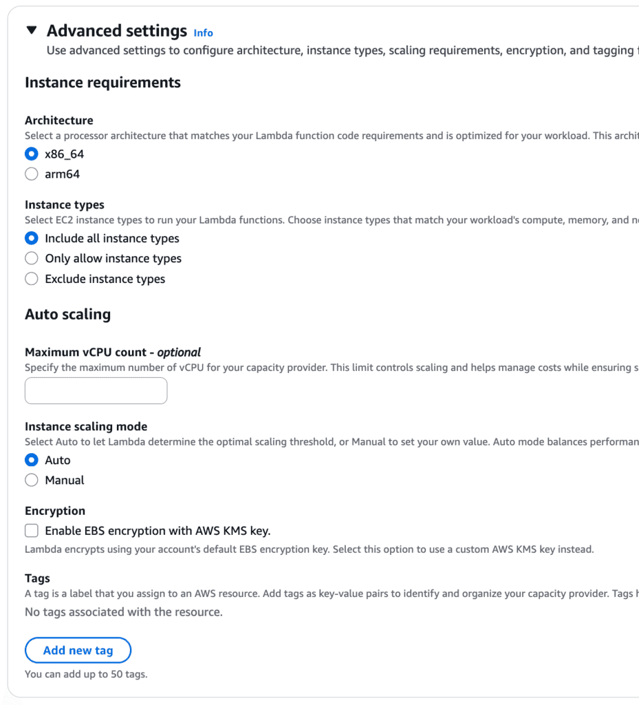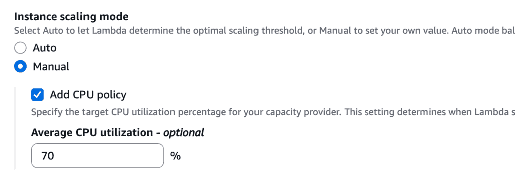 Similarly, you can let Lambda choose the scaling threshold or provide a target CPU utilization level you wish to maintain.