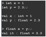 Once it’s open, it accepts F# code until you terminate the input with ;; and a newline, the code entered will be compiled and executed. After each code snippet is sent to FSI, for every name introduced you will see val <name> : type value, for example: