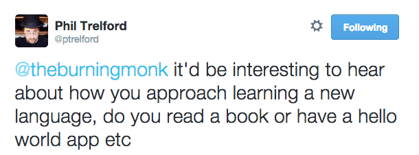 Being a responsible speaker, I have started preparing my talk – A tour of the language landscape – for NDC Oslo months ahead of time! When I first came up with the idea for this talk, I asked on Twitter if anyone else thought it was a good idea. Phil made a great point about including some information on how I go about learning a new language.