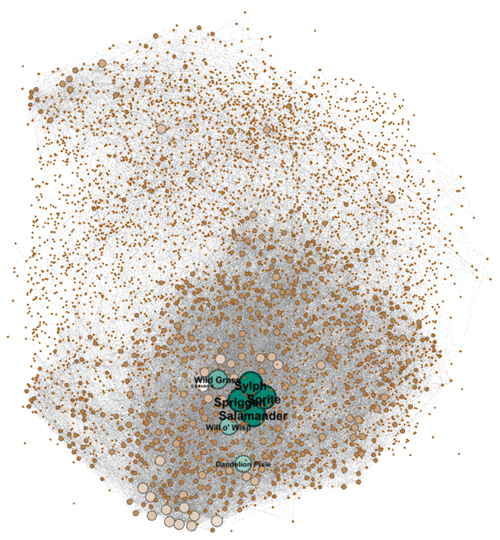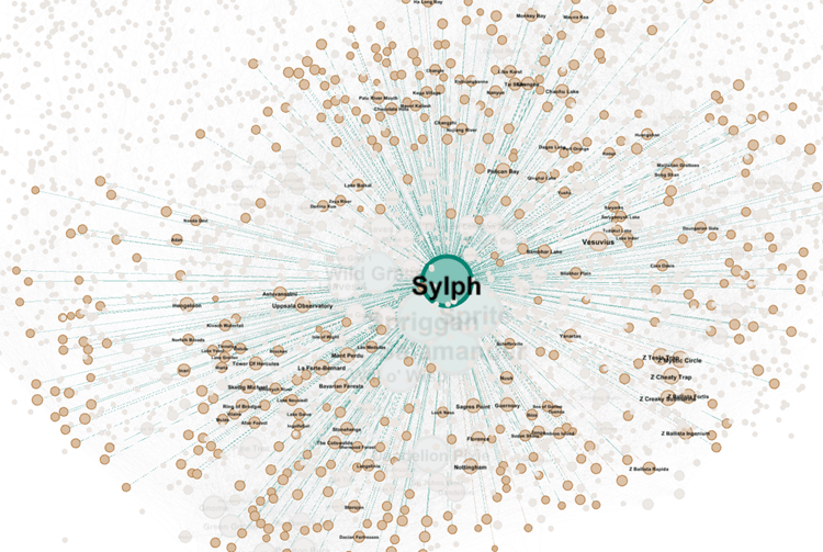 As you can see, the degree of connectedness varies greatly. For common low-level monsters such as Sylph, Spriggan, Sprite and Salamander, they are each connected to no less than 300 locations, traps and items.