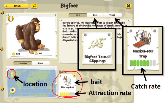For instance, Bigfoot and the Musket-teer Trap will have their stats. The lootsrelationship that exists between Bigfoot and his loot will also specify the chance of him dropping the loot.