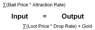 - change to one side of the equation (item price, drop/attraction rate, gold reward) requires change to the other side to keep things in balance
