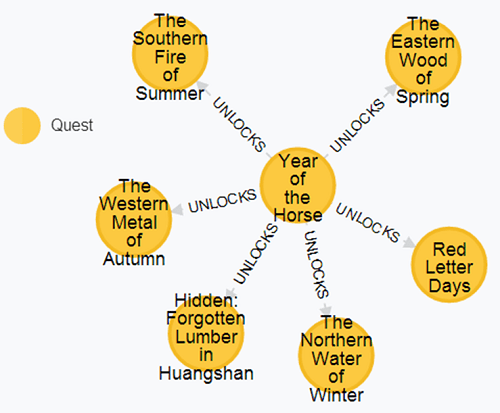 From the resulting graph, you can quickly see the quests that are unlocked by completing the Year of the Horse quest.