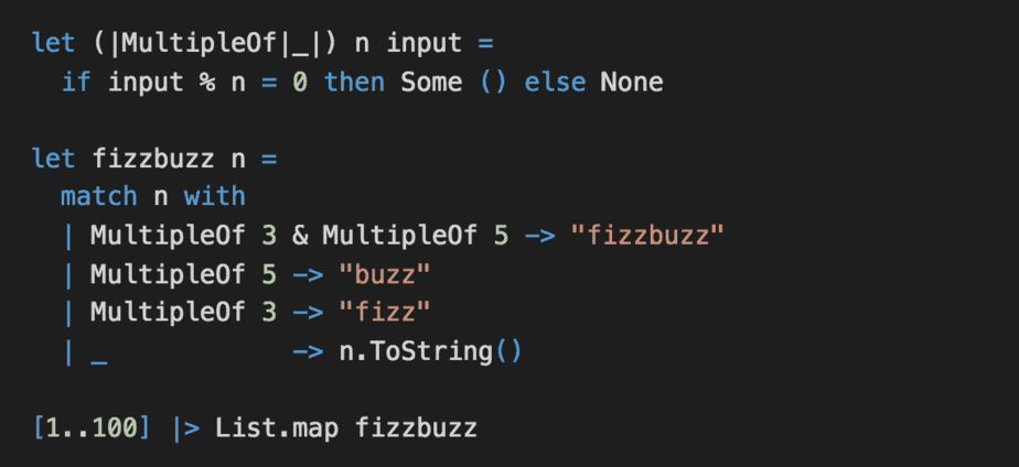 You can also mix and match different patterns together using & and |. So we can rewrite the fizzbuzz function as the following..
