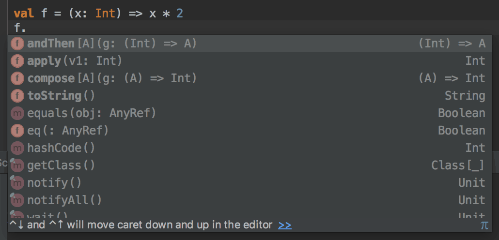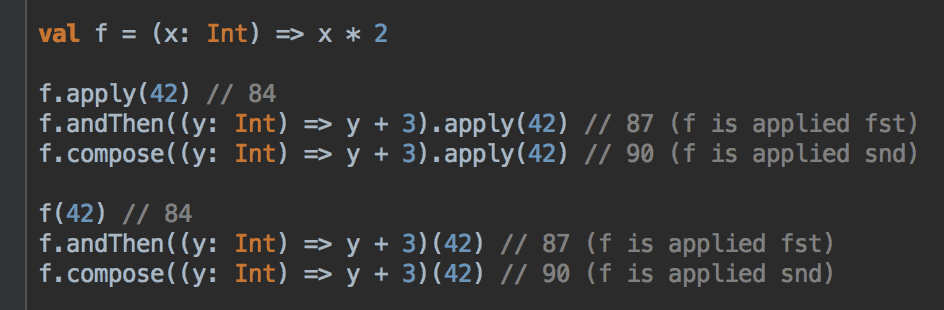 In Scala, if you assign a function to a value, that value will have the type Function1[TInput, TOutput]. Since everything in Scala is an object, this value also have a couple of functions on it.