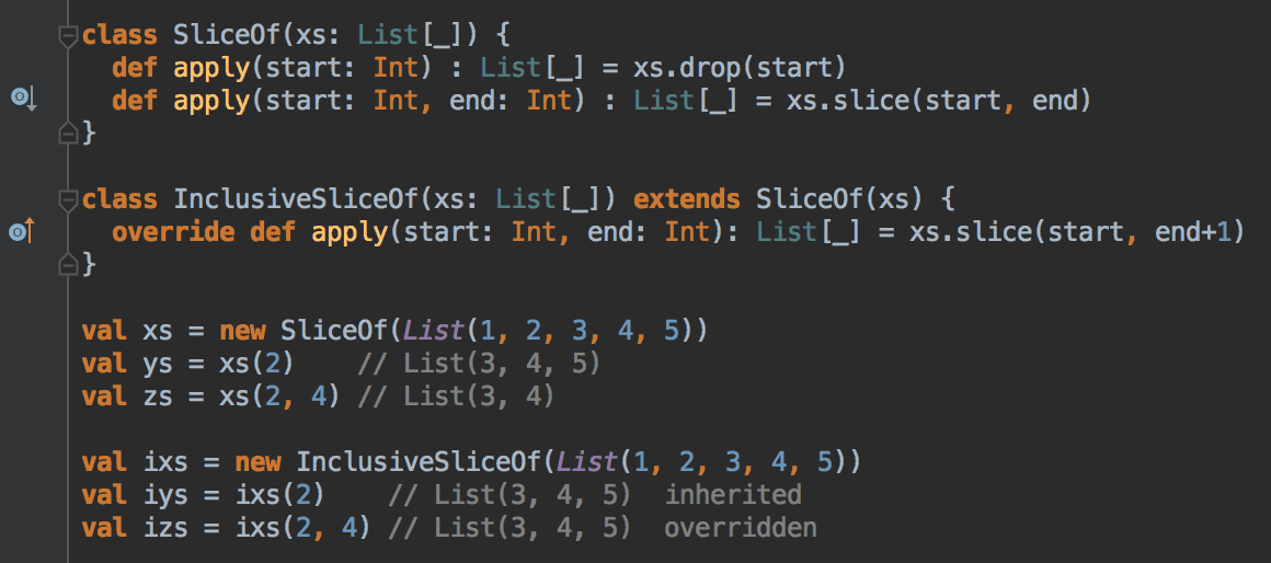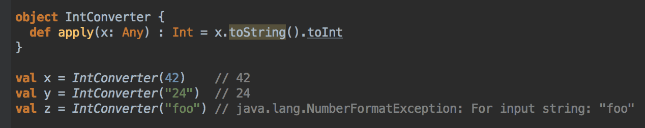 I find this notion of applying arguments to an object somewhat alien, almost as if this is an elaborate way of creating a delegate even though Scala already have first-class functions…