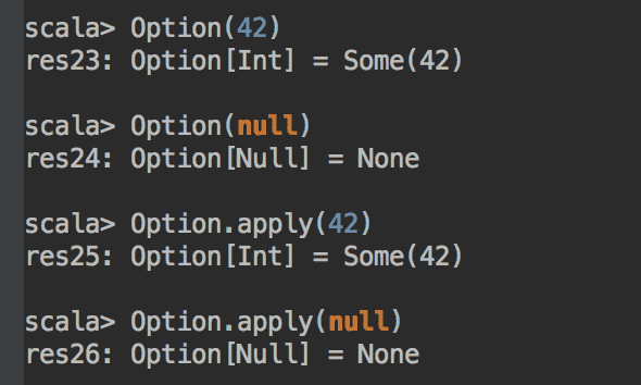 You see this pattern in Scala very often, and there are some useful built-in factories such as Option (which wraps an object as Some(x) unless it’s null, in which case returns None).