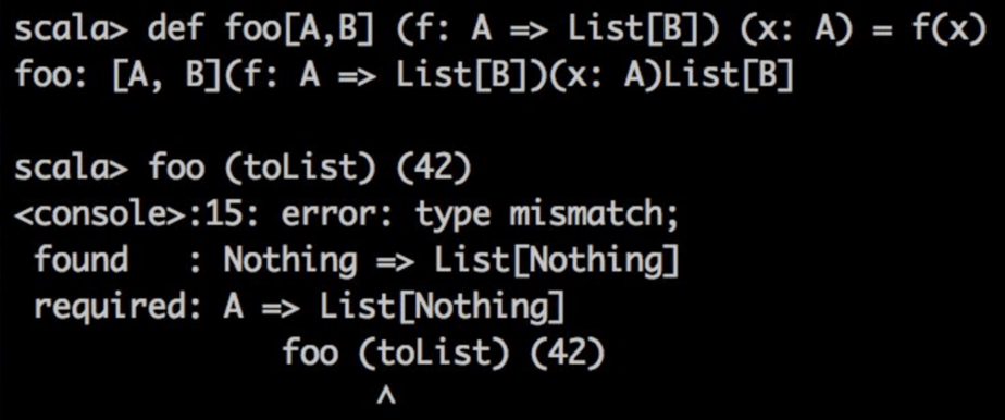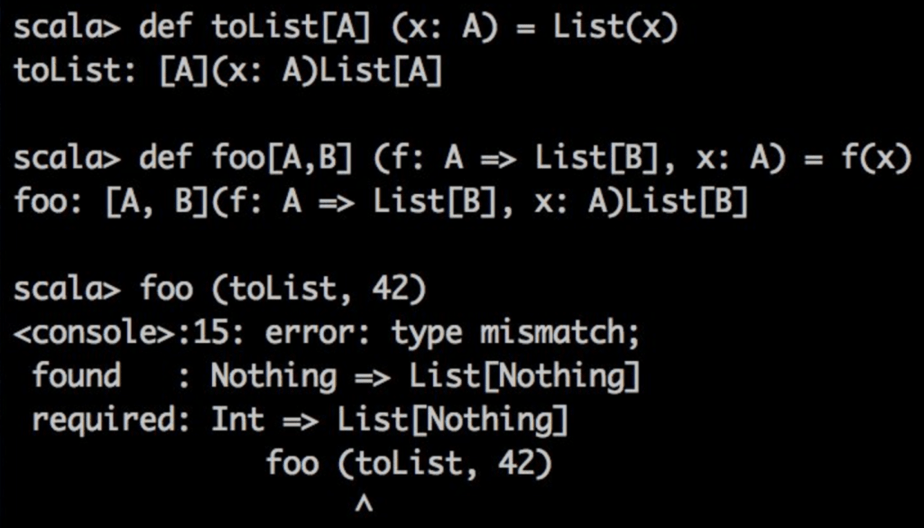 F# uses a Hindley-Milner type inference system similar to its ML brethren, but Scala’s type inference works slightly differently.