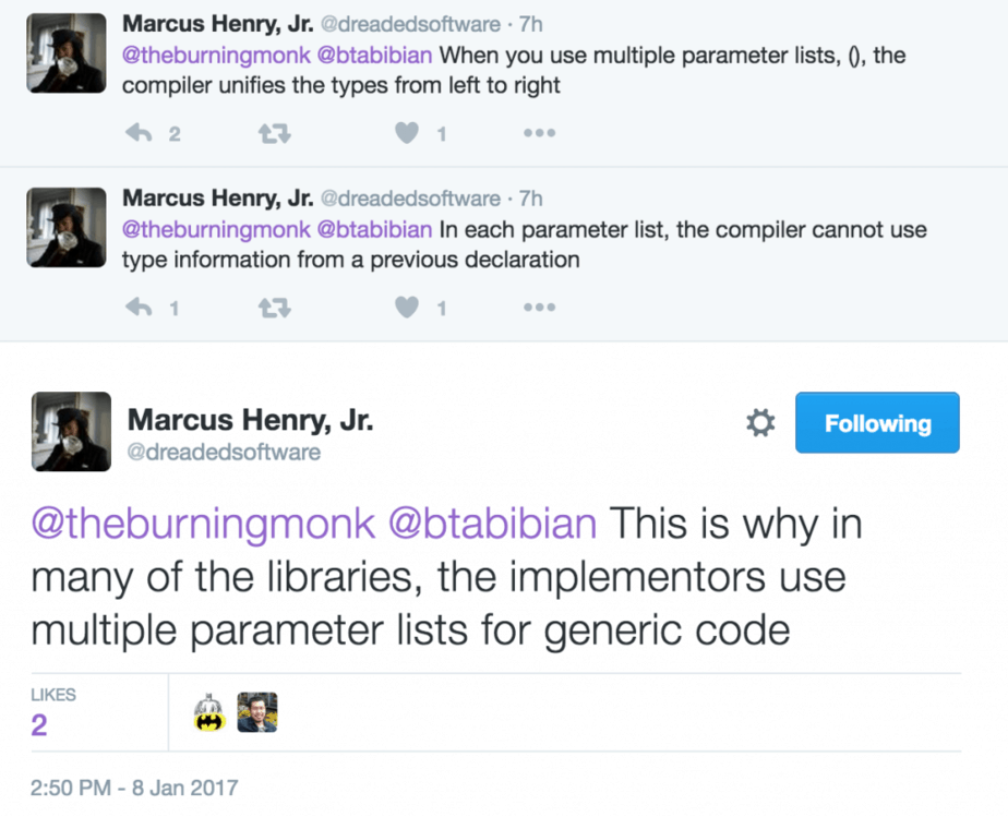 On the other hand I find traits and implicit both powerful language features, though I can see how they might be abused.. I like type classes, but I’m not convinced we necessarily need it in F# and having now spent some time with Scala (which is more powerful and expansive, and have more advanced language features than F#) it actually makes me appreciate the relative simplicity of F#.