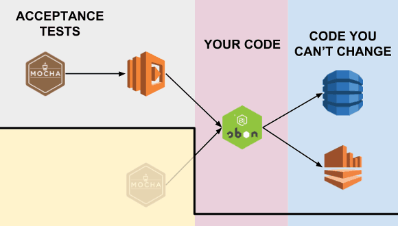 (this picture is slightly misleading in that the Mocha tests are not invoking the Lambda function programmatically, but rather invoking it indirectly via whatever input event the Lambda function is configured with – API Gateway, SNS, Kinesis, etc. More on this later.)