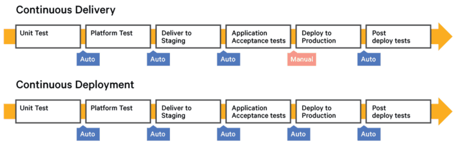 To this day I’m still confused by Continuous “Delivery” vs Continuous “Deployment”. There seems to be several interpretations, but this is the one that I have heard the most often: