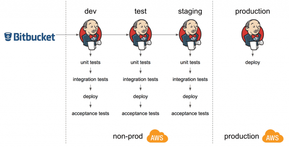In most cases, when a change is pushed to Bitbucket, all the Lambda functions in that project are automatically tested, deployed and promoted all the way through to the staging environment. The deployment to production is a manual process that can happen at our convenience and we generally avoid deploying to production on Friday afternoon (for obvious reasons ).