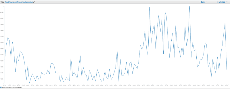 metric, which tells us that a Lambda function will sometimes lag behind. This did not happen frequently enough to present a problem but the spikes were unpredictable and did not correlate to spikes in traffic or number of incoming Kinesis events.