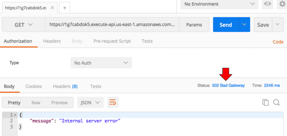 Here, I can see the service-a endpoint returned a 502 in Postman..