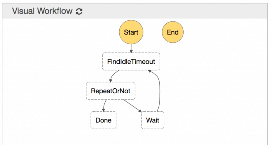 "Wait": { "Type": "Wait", "SecondsPath": "$.interval", "Next": "FindIdleTimeout" },