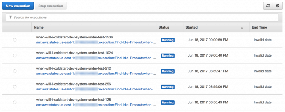 With this setup I’m able to kick off multiple executions?—?one for each memory setting.