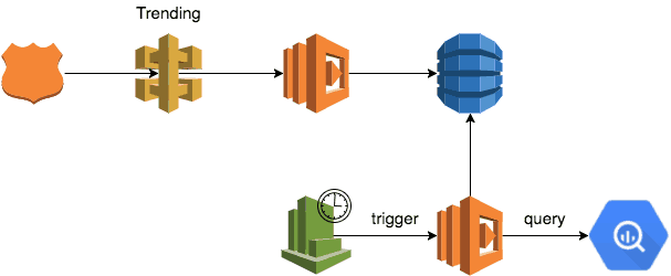 We created a cron job with CloudWatch Events and Lambda to perform the aforementioned query against BigQuery every 3 hours. To save on cost, our query would only process events that were inserted in the last 24 hours.