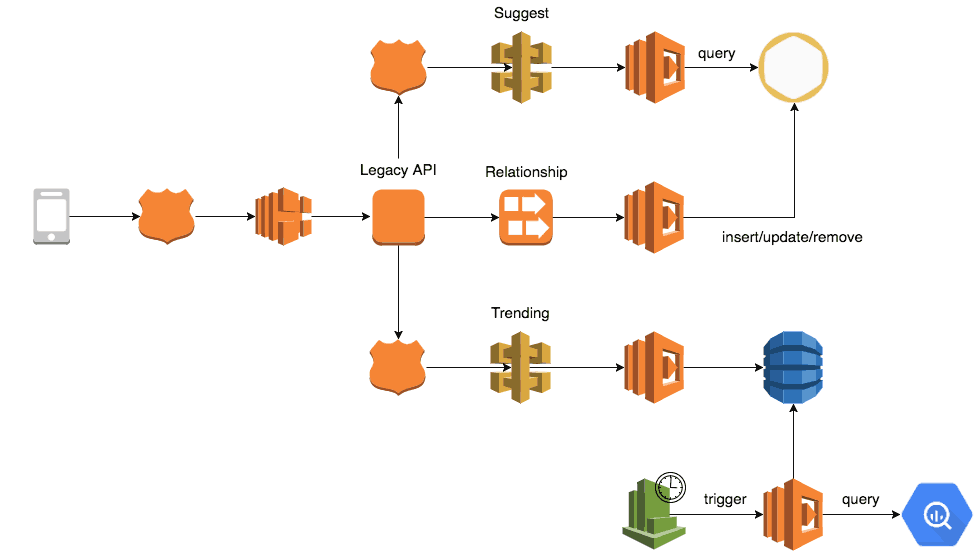Thankfully, all of our events (eg. X followed Y, X liked Y’s post, etc.) are streamed into Google BigQuery. We chose BigQuery because AWS Athena hadn’t been announced yet and RedShift is not the right model for making ad-hoc, live queries that need to respond quickly. Also, I had many years of experience using BigQuery at Gamesys so it was a no-brainer at the time.