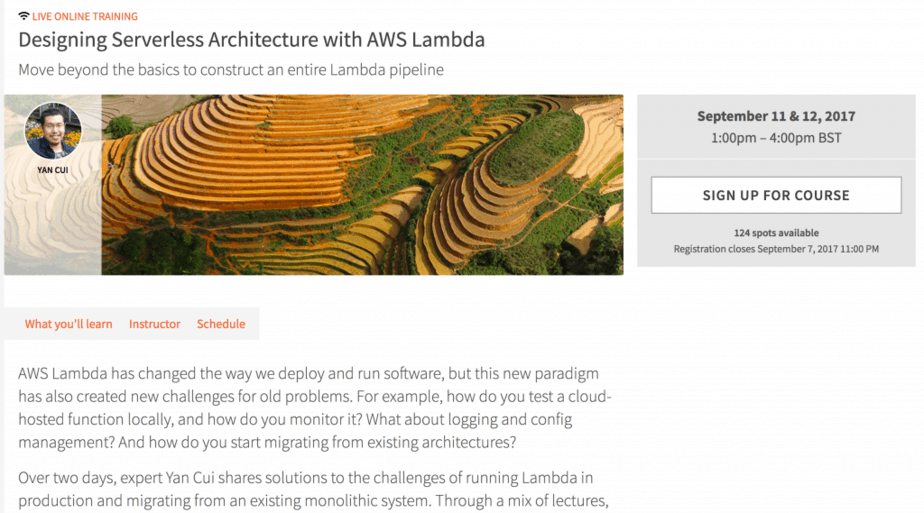 Hi everyone, just a quick note to let you know that I’m running a live online course with O’Reilly on designing serverless architectures with AWS Lambda.