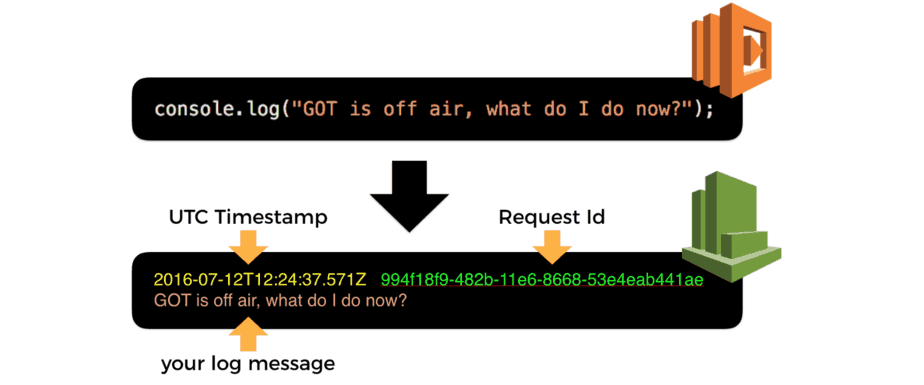 Whenever you write to stdout, those outputs are captured by the Lambda services and sent to CloudWatch Logs as logs. This is one of the few background processing you get, as it’s provided by the platform.