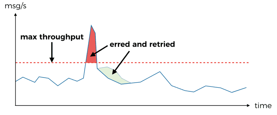 If the burst in throughput is short then there’s a good chance the retries would be sufficient (there’s a randomised, exponential back off between retries too) and you won’t miss any messages.