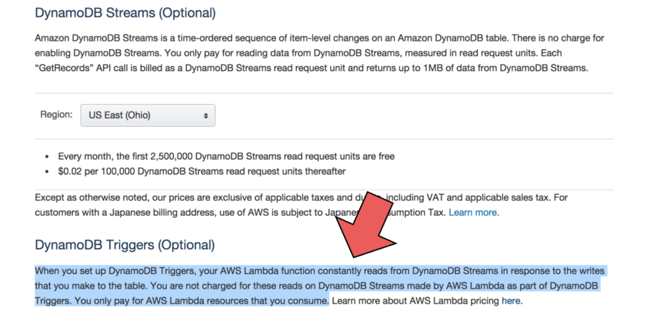 - if you’re processing DynamoDB Streams with AWS Lambda then you don’t pay for the reads from DynamoDB Streams (but you still pay for the read & write capacity units for the DynamoDB table itself)