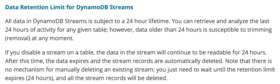 From a development point of view, DynamoDB Streams also has some limitations & shortcoming: