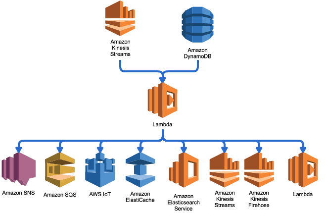 This is the approach used by the aws-lambda-fanout project from awslabs. It allows you to propagate events from Kinesis and DynamoDB Streams to other services that cannot directly subscribe to the 3 basic choice of brokers either because account/region limitations, or that they’re just not supported.