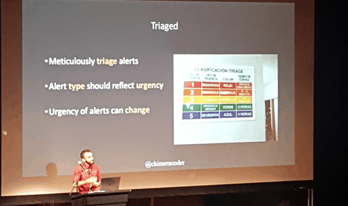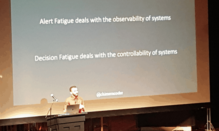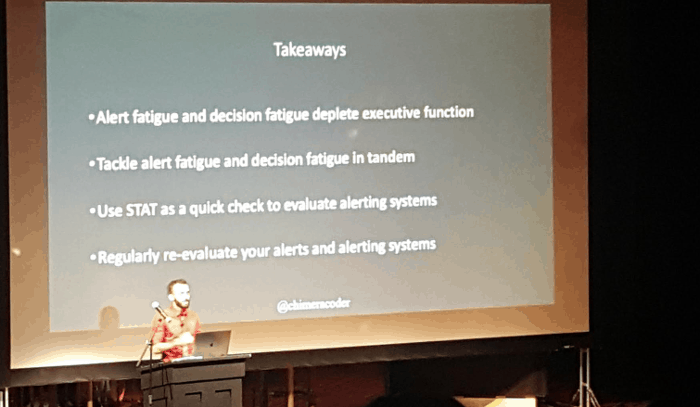 Aditya used alert fatigue in hospital stuffs to draw many parallels with the software industry.