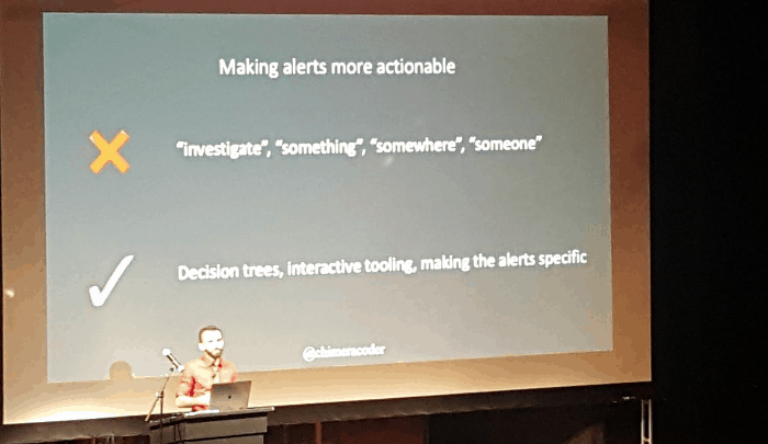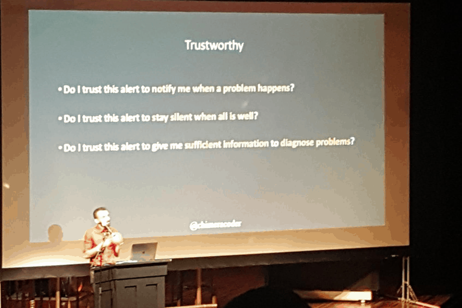 Day 1 was great (despite my massive jet lag!), and the talks were mostly focused on the human side of monitoring. Of the talks two stood out for me: