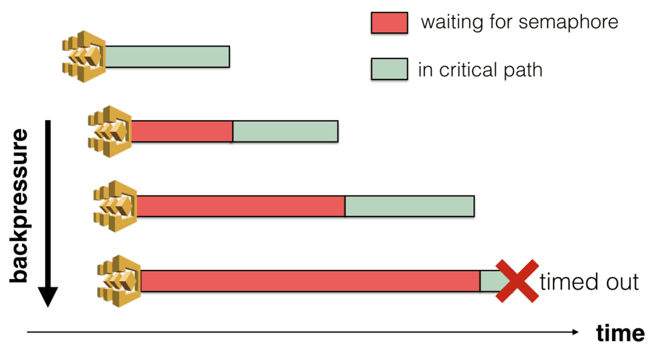 Second, if you have configured timeout on your state machine (and you should!) then they can also timeout. This creates backpressure on the system.