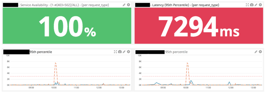 We proposed an alternative approach – to monitor service health by tracking the percentage of requests whose response time is over the threshold. Unlike percentiles, this metric aggregates well when summarising results from multiple agents, and gives us a clear picture of the impact of an outage.