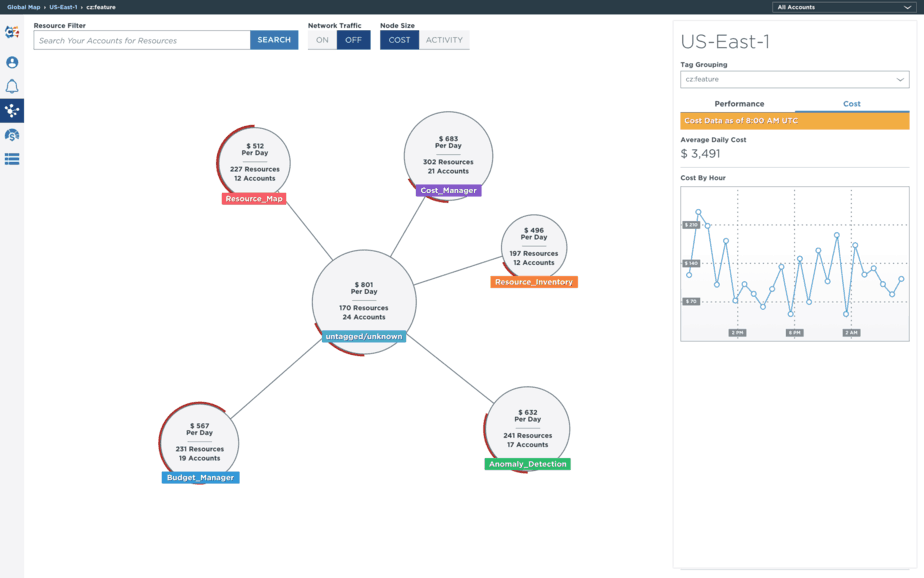 Our platform automatically analyzes your cloud environment and visualizes the state and cost of your cloud’s operating performance in real-time. With cost as an operational metric CloudZero can visualize your infrastructure within the context of cost.