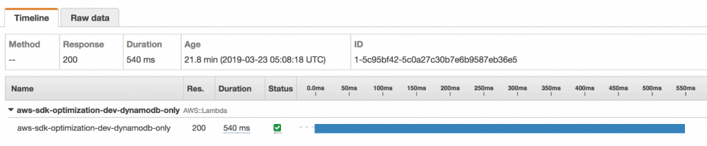 package also has some additional baggages that we don’t need. By default it supports Express.js apps, MySQL and Postgres. If you are only interested in instrumenting the AWS SDK and http
