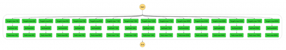 To help me quickly find the threshold, I used Step Functions to test different values of Y (i.e. peak throughput): 100, 200, 300, 500, 700, 900, 1100, 1300, 1500, 1750, 2000, 2500, 3000, 5000, 7000, and 9000.