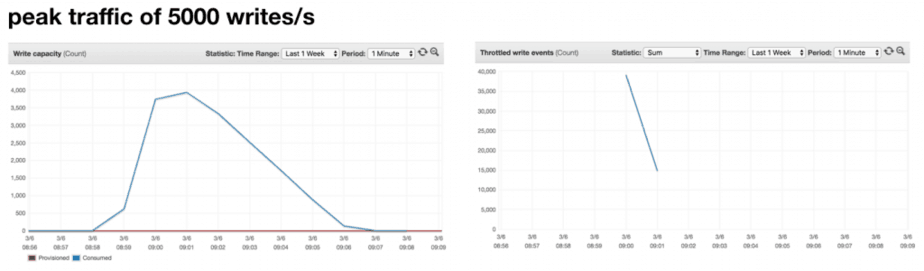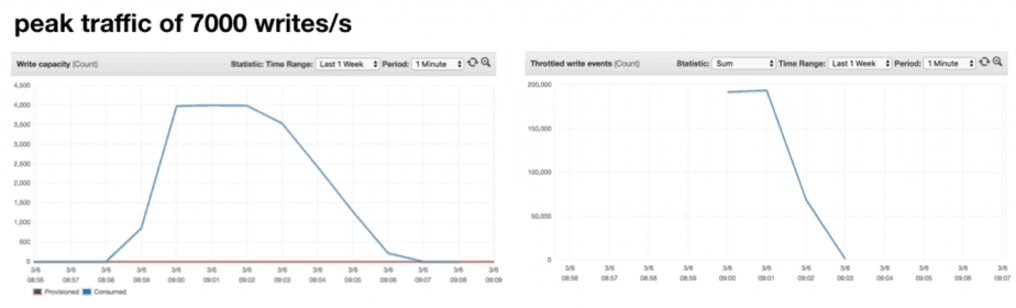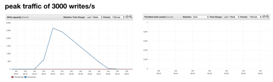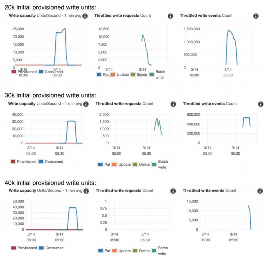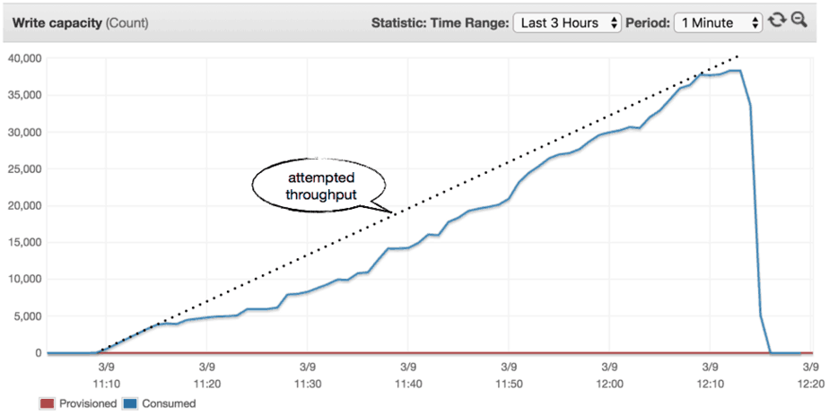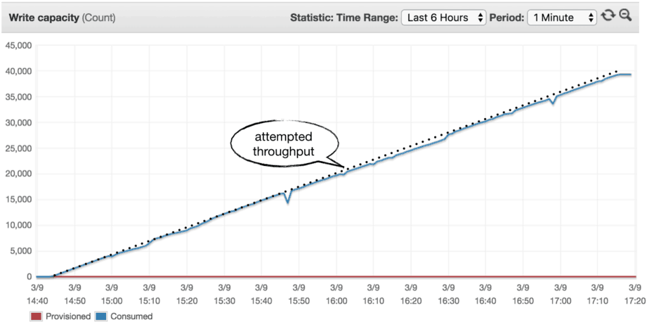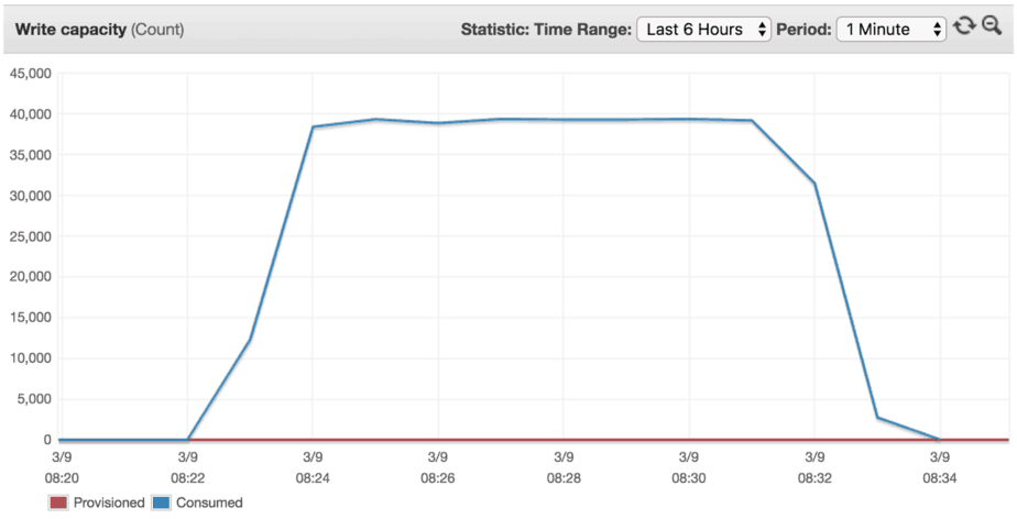 As you can see from the result, it took roughly one hour to scale the table to meet our throughput demand of 40,000 writes/s.