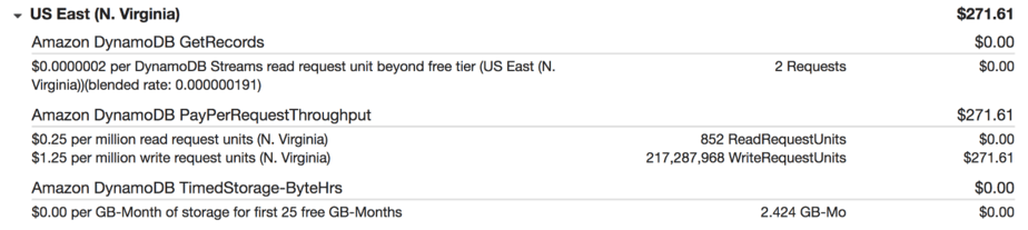 As a side, all these experiments cost us a total of $271.61 for over 217 million write requests.