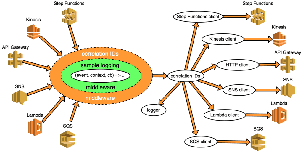 - a collection of client libraries for HTTP, SNS, SQS, Kinesis, Step Functions and Lambda, all of which knows how to forward the current correlation IDs on.