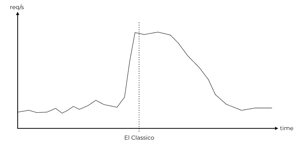 DAZN has many millions of subscribers worldwide and serves over a million concurrent viewers during live events. Its traffic pattern is very spiky and centres around these live sporting events.
