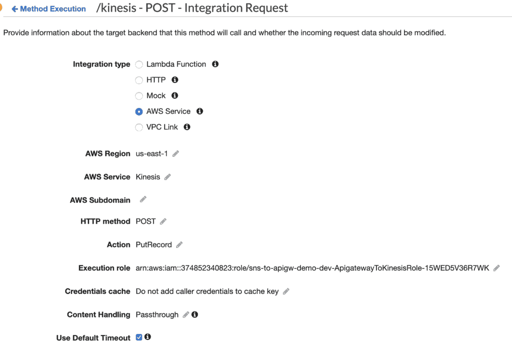 endpoint to the API, which forwards the requests from SNS to our Kinesis stream.