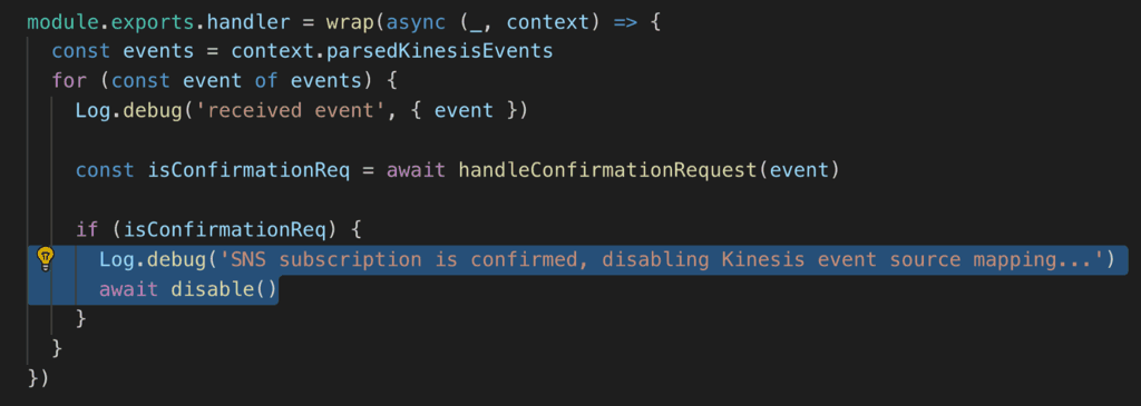However, this function only needs to run once – when the SNS topic sends its confirmation request. It would continue to receive all subsequent events and would just ignore them. That seems like such a waste!