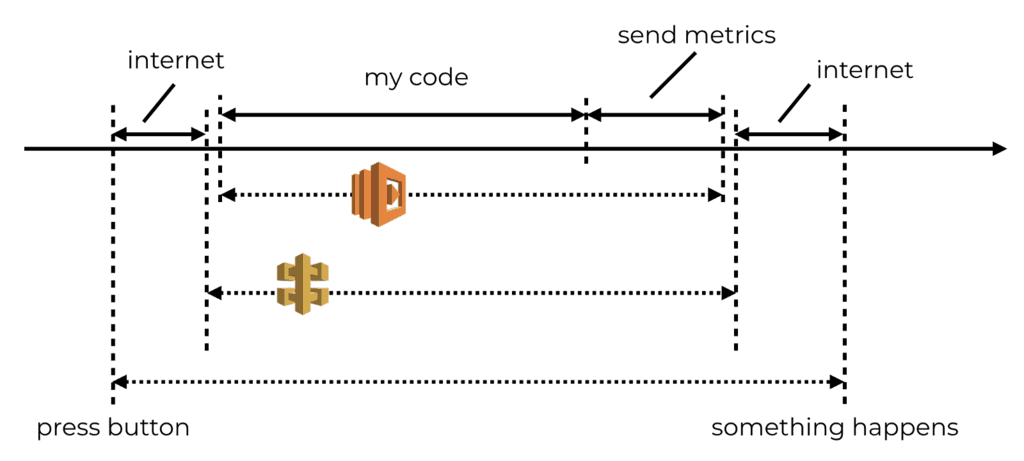 Individually, the delay might be negligible. CloudWatch metrics typically respond within tens of milliseconds. That is acceptable to most. But they can quickly compound when functions call one another via API Gateway.