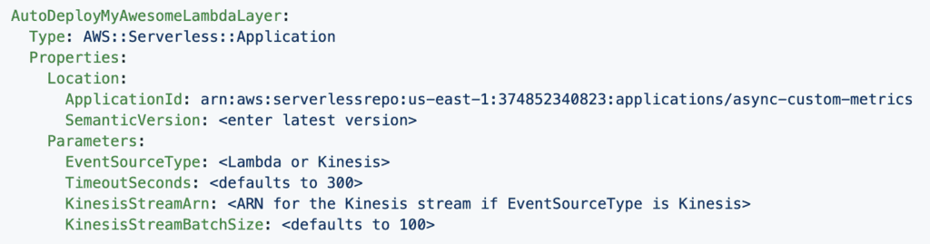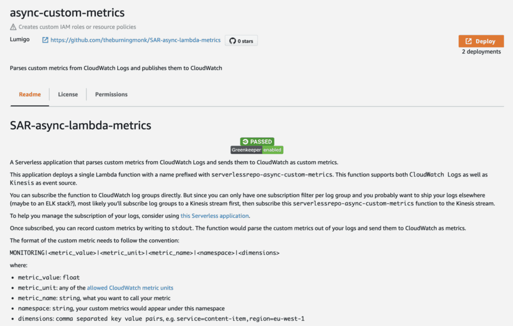 To make it really easy for you to record custom metrics asynchronously, I have published a new application to the Serverless Application Repository. You can also check out the source code on GitHub here.