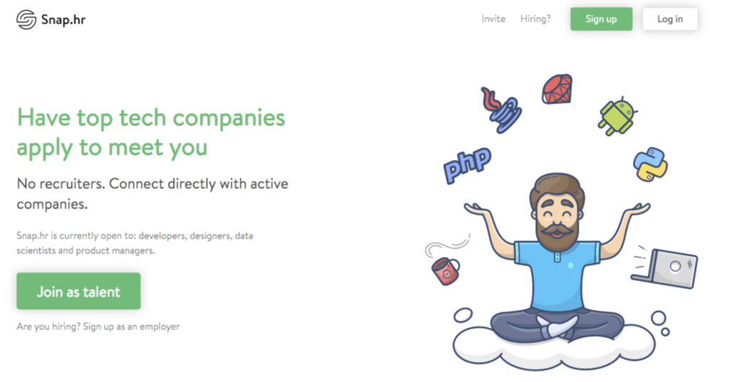 Snap.hr is a transparent job hunting platform built for developers by developers. On Snap.hr, 3rd party recruiters are banned, and companies are always up front about the role and salary. Snap puts developers in the driving seat, so you never feel hassled or left waiting. It’s how hiring should be.