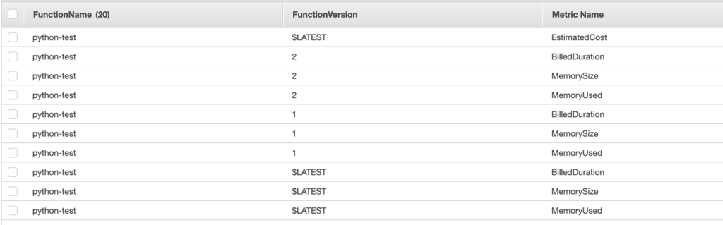 - EstimatedCost: the estimated cost for the function, calculated using the BilledDuration and MemorySize.