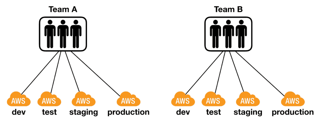 It’s common for teams to have multiple AWS accounts, one for each environment. While there doesn’t seem to be a consensus on how to use these environments, I tend to follow these conventions: