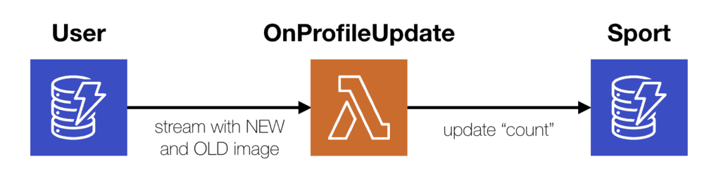 Every time a user updates his/her sports preference, we’ll process the change through the DynamoDB Stream from the User
