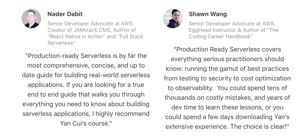 By the end of the workshop, you should have a broader view of the challenges you will face as the architecture matures and expands. You should also get a clear idea of what it takes to harden your serverless application and make it production-ready.