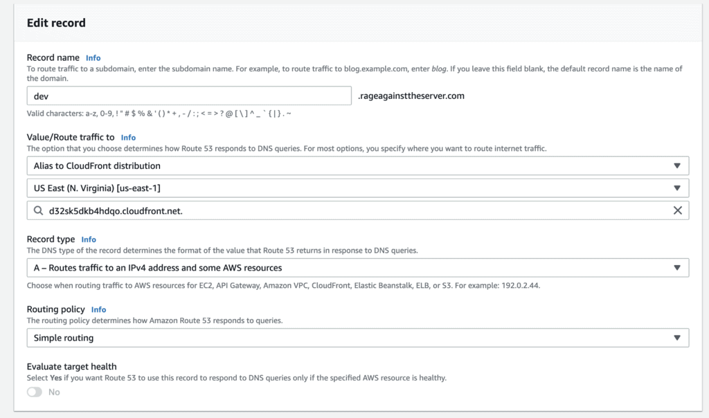 As a final step for both of these approaches, you need to configure a Route53 record for them in your hosted zone.