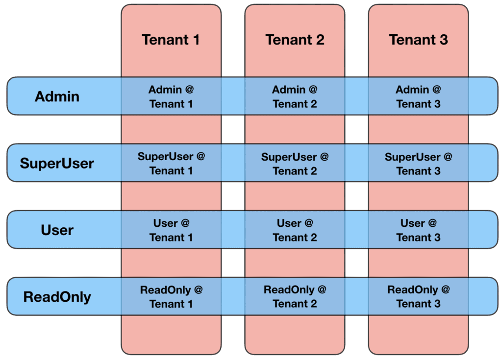 You see, a common requirement in these multi-tenant applications is to support roles within each tenant. These are usually well-defined roles in your application and a user would fall into one of these roles within his/her tenant.